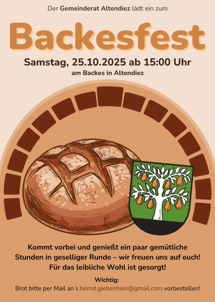 Der Gemeinderat Altendiez lädt zum Backesfest ein.